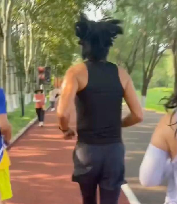 只见那人身材挺拔,步伐矫健,正沿着小道跑步,飞扬的头发随着节奏摆动。